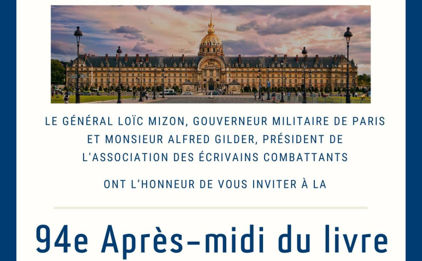 L'Association des Ecrivains Combattants organise son 94ème Après-midi du Livre samedi 6 décembre 2025, de 14h30 à 18h30, dans les Salons du gouverneur militaire de Paris, à l'Hôtel national des Invalides.