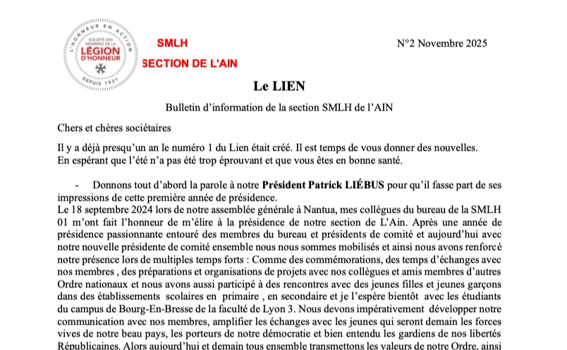 Pour lire le n°2 de notre bulletin "Le Lien", cliquez sur le bouton ci-dessous, vous y découvrirez les activités de la section
